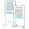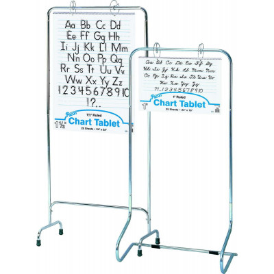 Tubular metal stands with rubber-tipped legs. Each stand holds individual sheets or full chart pads. 28" W x 64" H.