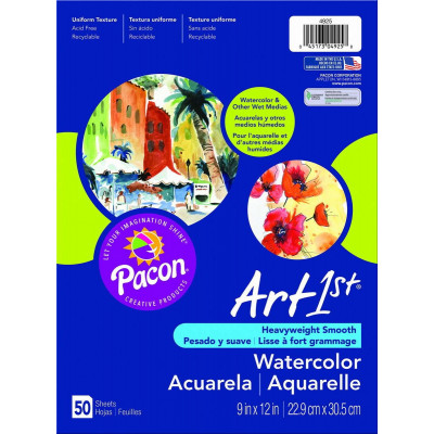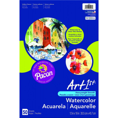 Heavyweight watercolor paper in an economical package. Perfect for Pre-K and student grade artwork. These sturdy sheets work well for wet and mixed media. Art1st® Watercolor Paper can also be found in Fresh Artist® programs, which help provide art supplies and funding to low-income schools while teaching children new ideas, new aesthetics and new art making skills. Acid free. 18" x 24". 50 sheets.
