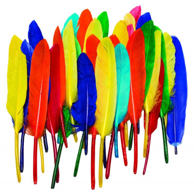 14 grams (approximately 96 pieces) 3-5" feathers in bright, non-toxic assorted colors.