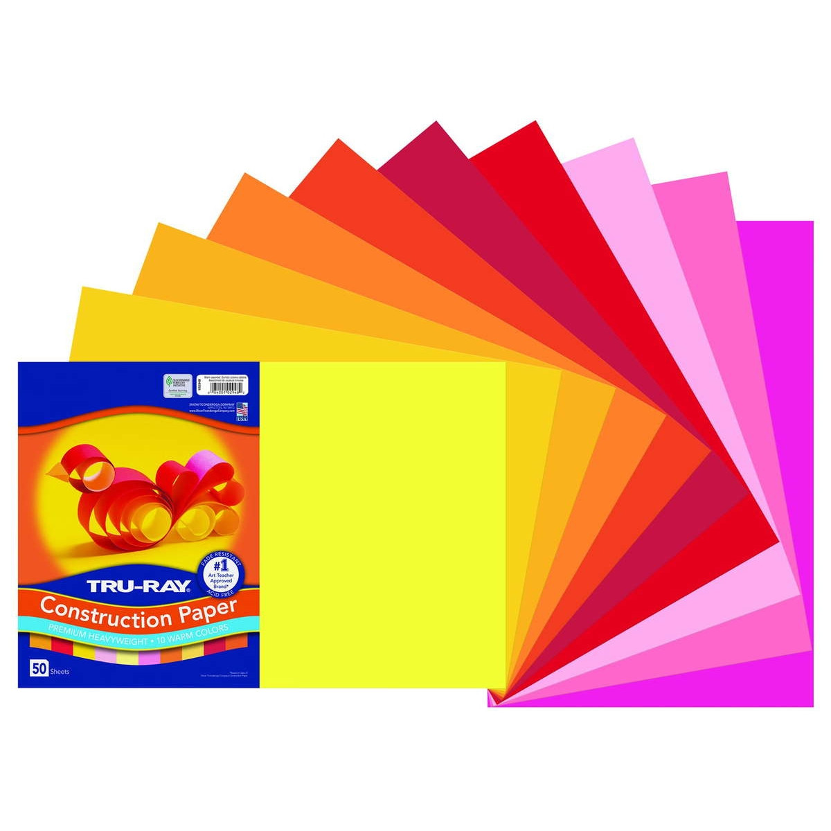 Tru-Ray® Fade-Resistant Construction Paper, 12" x 18", Warm Assorted ||