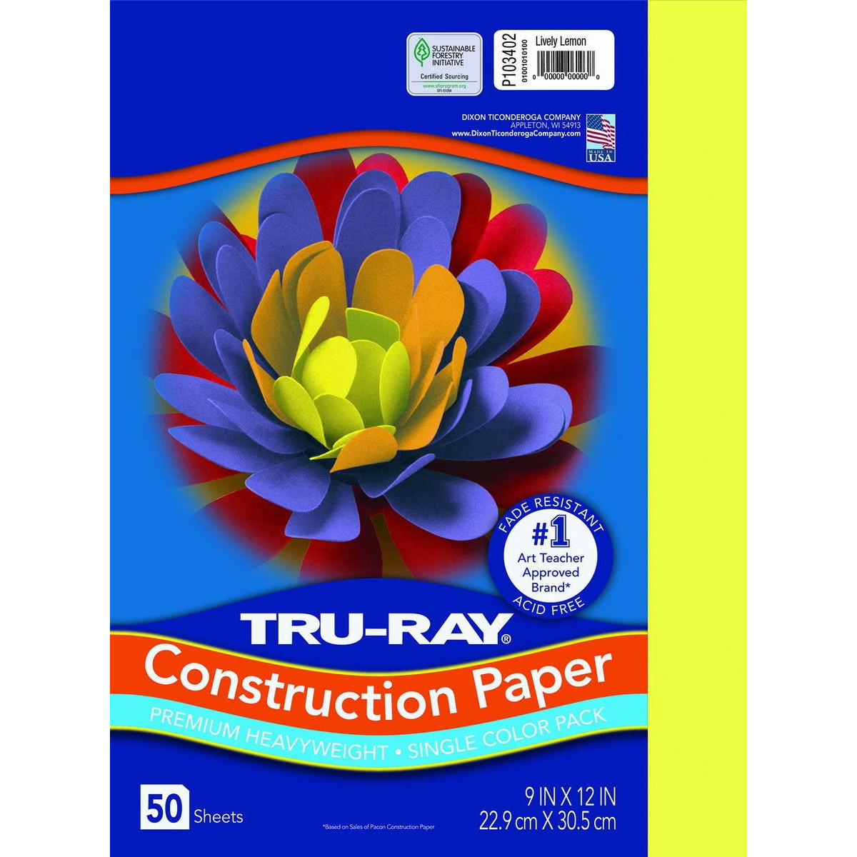 Tru-Ray® Fade-Resistant Construction Paper, 9" x 12", Lively Lemon ||