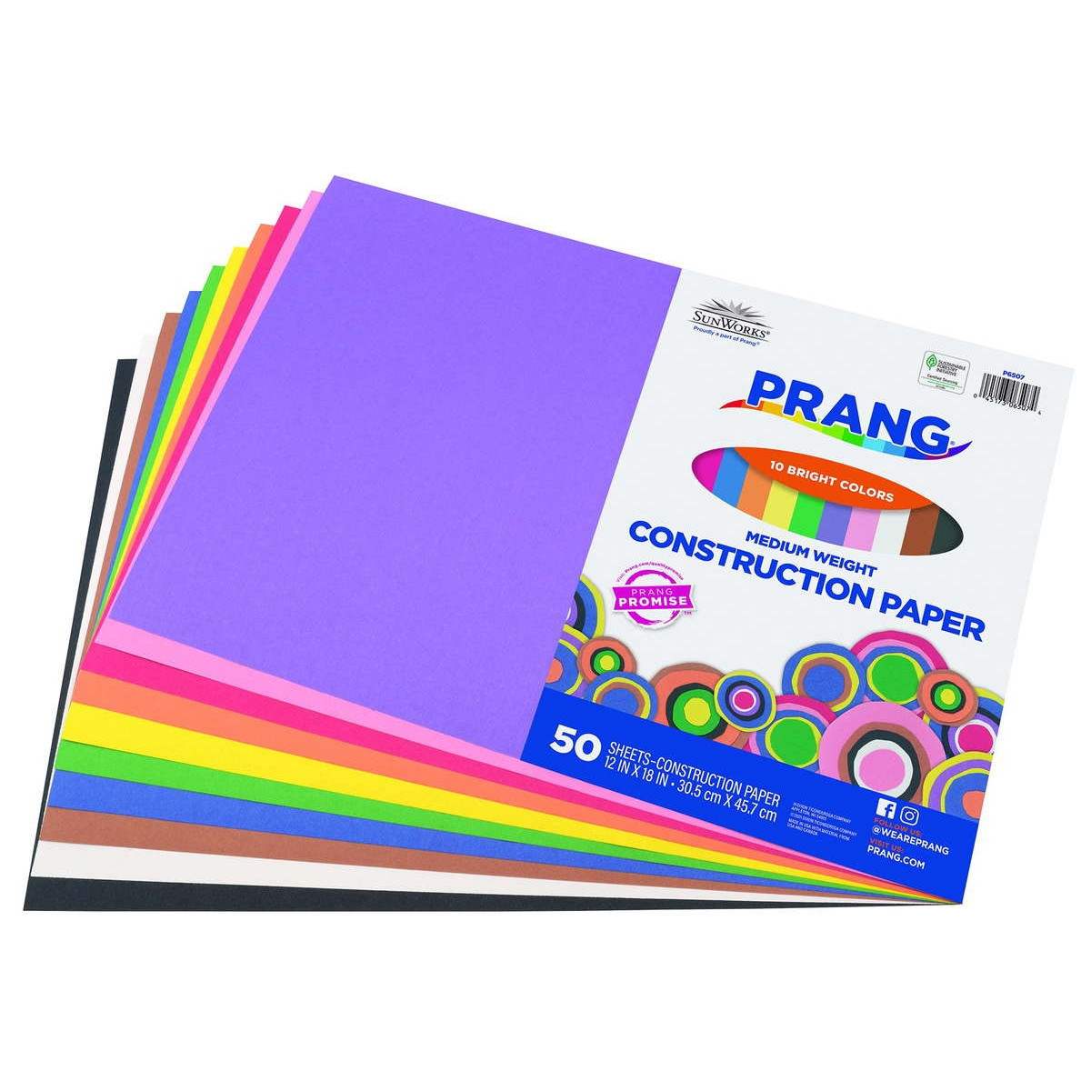 Prang® (Formerly SunWorks®) Medium Weight Groundwood Construction Paper provides the best value in school grade construction paper. It is the perfect solution for school projects and other arts and crafts. It has bright and consistent colors, is slightly textured and cuts and folds evenly without cracking. This 10 color assortment includes Scarlet, Black, Yellow-Orange, Brown, Pink, Violet, Blue, Holiday Green, White, and Yellow. Recyclable.