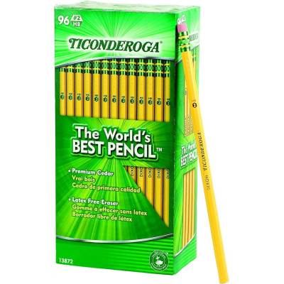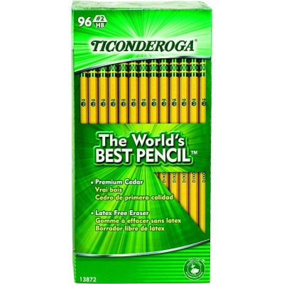 Ticonderoga® has a tradition of fine quality writing instruments in the US for over 100 years. The exclusive graphite core features a proprietary formula focusing on graphite mined from carefully controlled sources to deliver extra smooth performance. Top-quality erasers remove marks completely without smudging. Premium wood harvested from responsibly managed sources provides smooth, even sharpening with minimal breakage. Teachers prefer Ticonderoga® for its dependability and craftmanship. When only the best will do, choose Ticonderoga® brand pencils.
